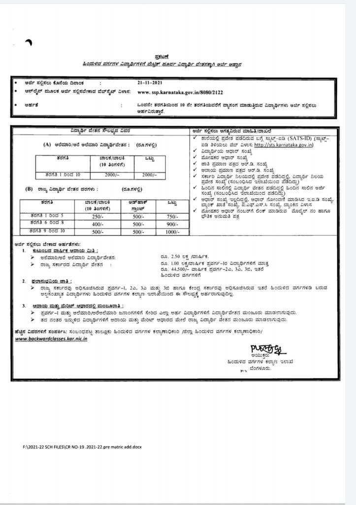 Department of Backward Classes Welfare is inviting applications for SSP Prematric Scholarship for OBC students. Online Application for SSP Prematric