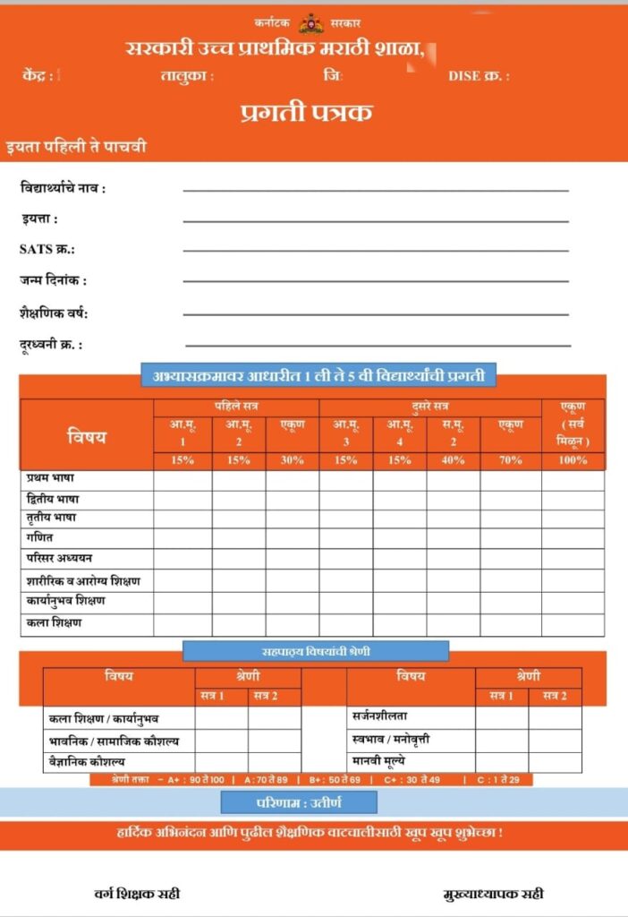 PRAGATI PATRAK MARATHI | प्रगती पत्रक