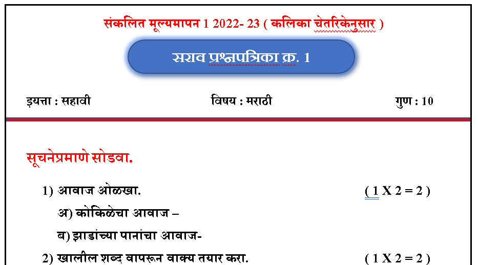 SA1 सराव प्रश्नपत्रिका 2022- 23 (इयत्ता : 6 वी)