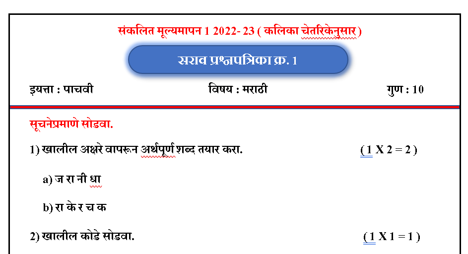 SA1 सराव प्रश्नपत्रिका 2022- 23 (इयत्ता : 5 वी मराठी)